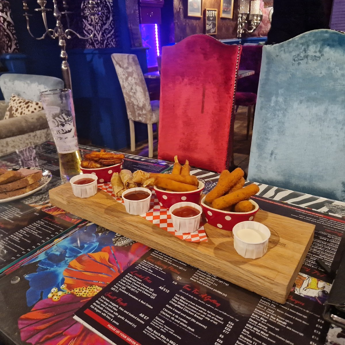 Start your culinary journey with a Sharing Board of Beetroot Houmous paired with rustic breads or indulge in the savory Buttermilk Chicken Strips with blue cheese dip. For those who love unique bites, don’t miss the Cheese Filled Chorizo Skewers.